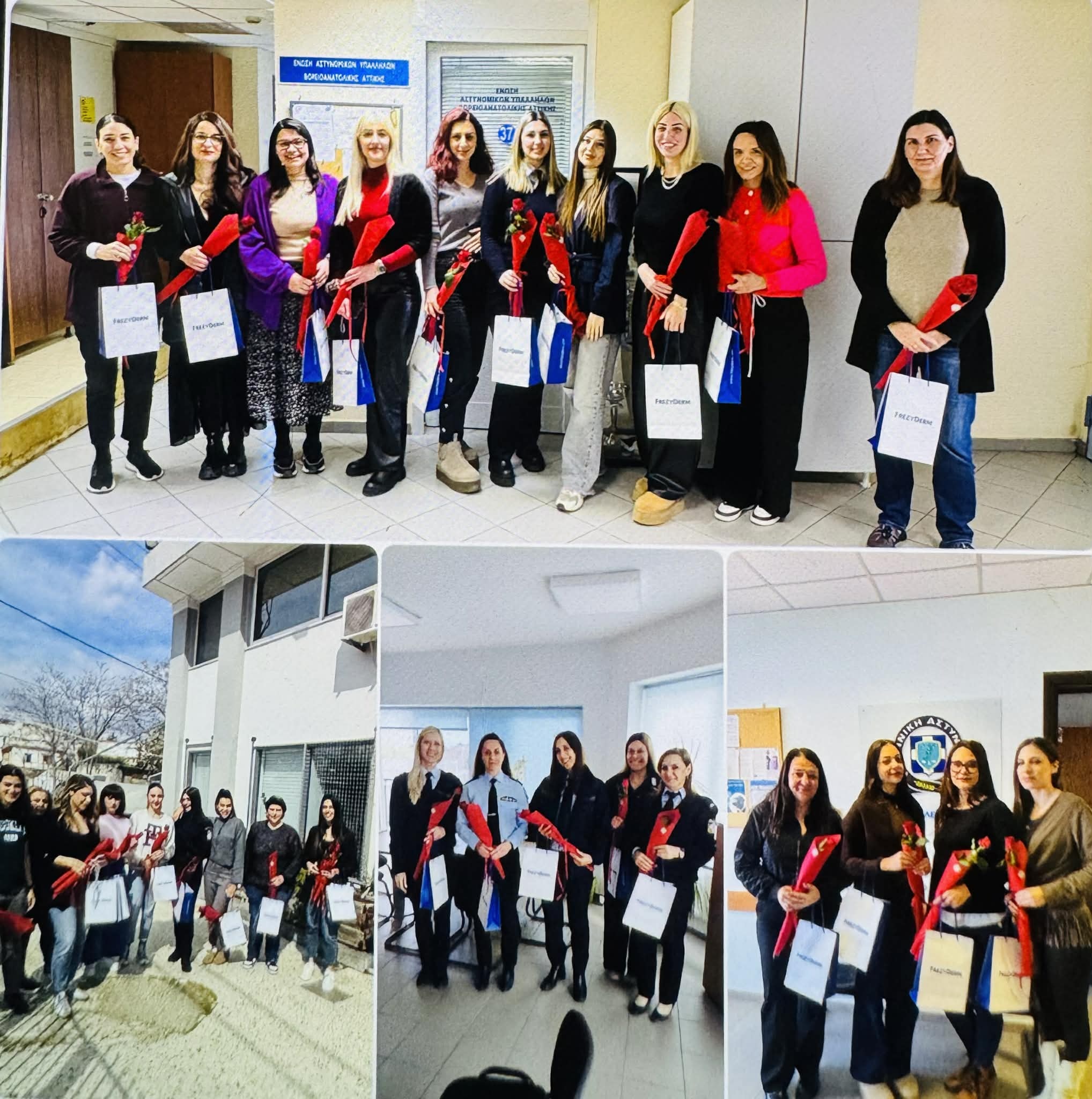 Στο πλαίσιο της πρωτοβουλίας αυτής, μέλη του Διοικητικού Συμβουλίου επισκέφθηκαν Υπηρεσίες της Βορειοανατολικής Αττικής και προσέφεραν σε κάθε γυναίκα αστυνομικό από ένα τριαντάφυλλο, ως ένδειξη σεβασμού, εκτίμησης και αναγνώρισης της καθημερινής τους προσφοράς στο Σώμα της Ελληνικής Αστυνομίας και στην κοινωνία. Παράλληλα, προσφέρθηκαν συμβολικά δώρα, τα οποία περιελάμβαναν αρώματα ευγενική προσφορά της εταιρίας VIORYL, καθώς και προϊόντα περιποίησης της εταιρίας FREZYDERM.