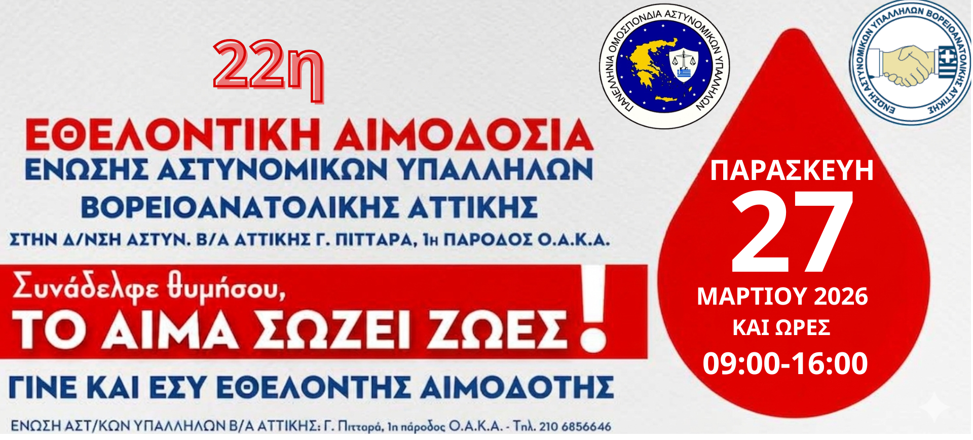 Η Ένωση Αστυνομικών Υπαλλήλων Βορειοανατολικής Αττικής θα συνεχίσει να αναλαμβάνει πρωτοβουλίες που αναδεικνύουν τον σημαντικό ρόλο της γυναίκας στην Ελληνική Αστυνομία και τιμούν τη διαχρονική προσφορά της στην κοινωνία και την υπηρεσία προς τον πολίτη.